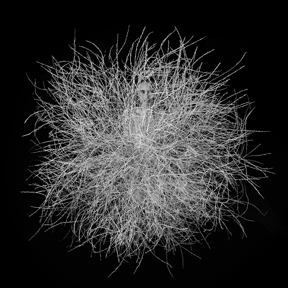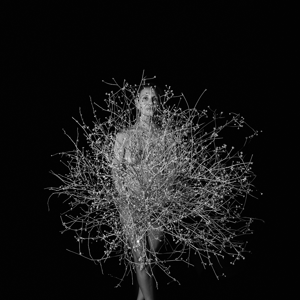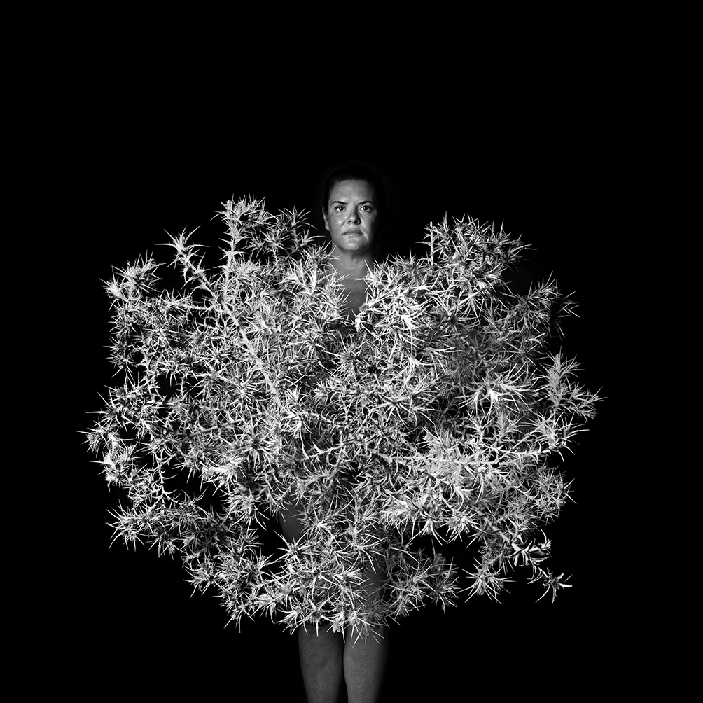 Positioned between the intimate and the collective, the “Off White” series—partially conceived as triptychs—unfolds as an intergenerational journey: a woman shielded from lightning, a young girl facing her first disappointment, and a mother. In these photographs, women who emerge and fade within tangled thorns are transformed into luminous stars, inviting the viewer to engage and reflect.