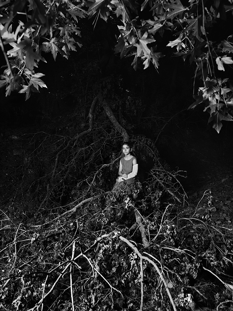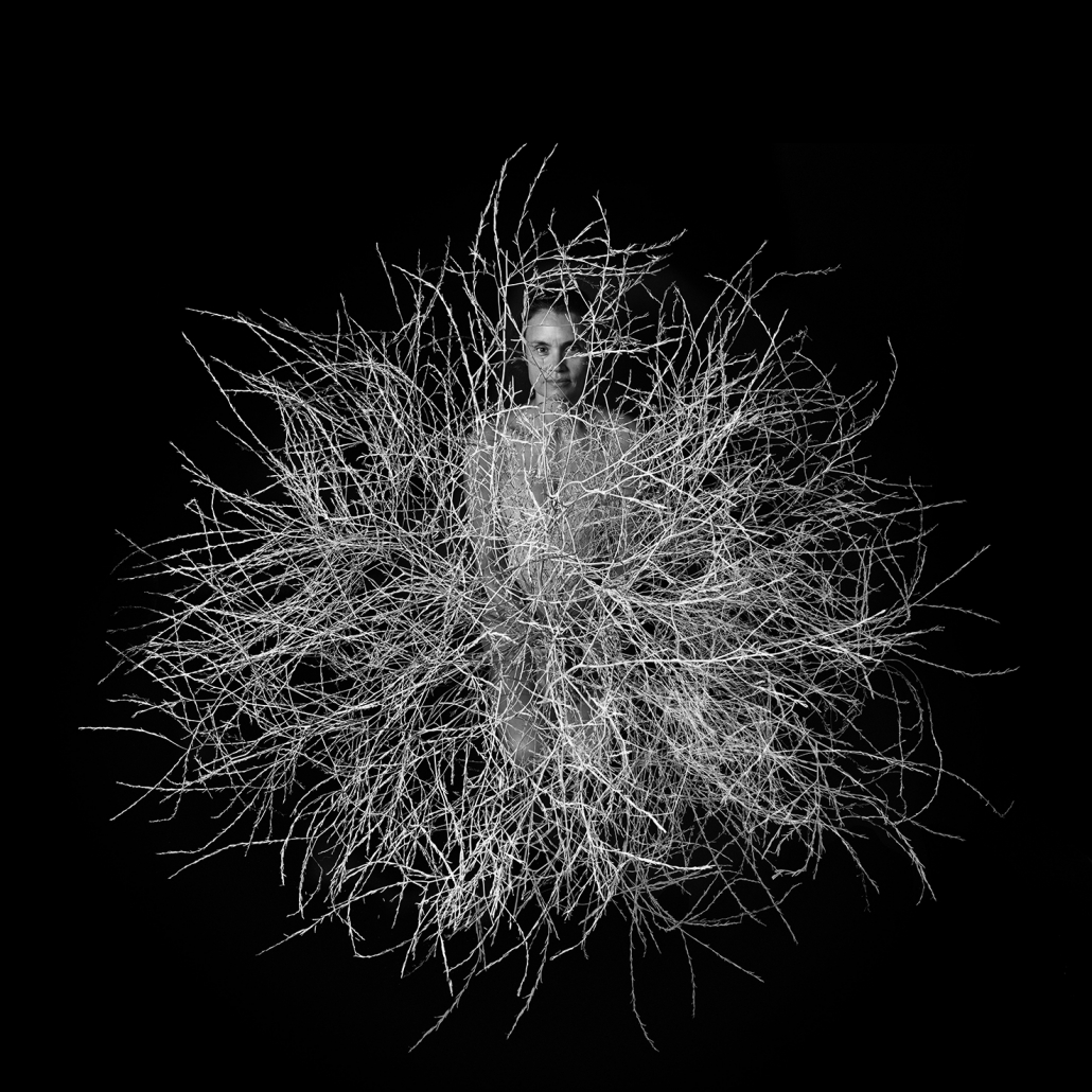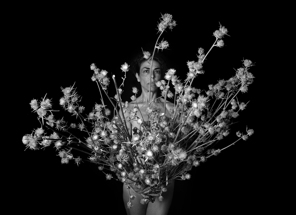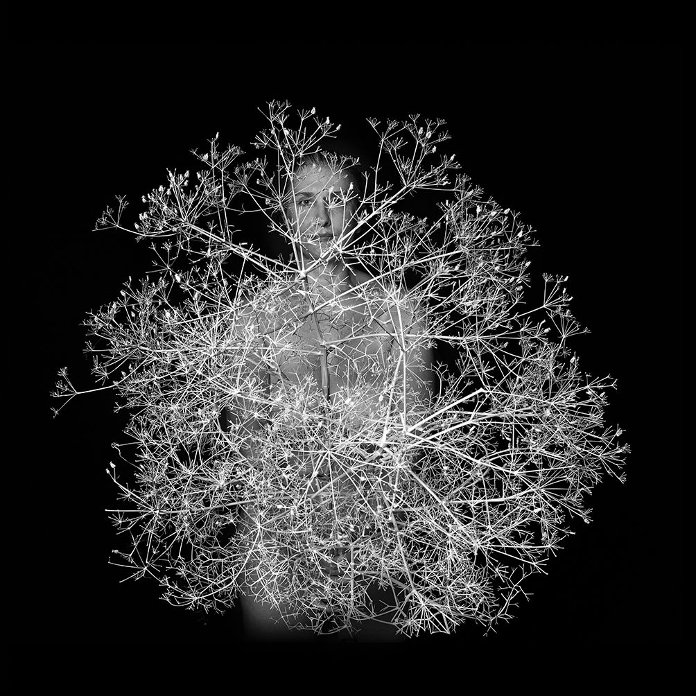 Positioned between the intimate and the collective, the “Off White” series—partially conceived as triptychs—unfolds as an intergenerational journey: a woman shielded from lightning, a young girl facing her first disappointment, and a mother. In these photographs, women who emerge and fade within tangled thorns are transformed into luminous stars, inviting the viewer to engage and reflect.